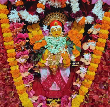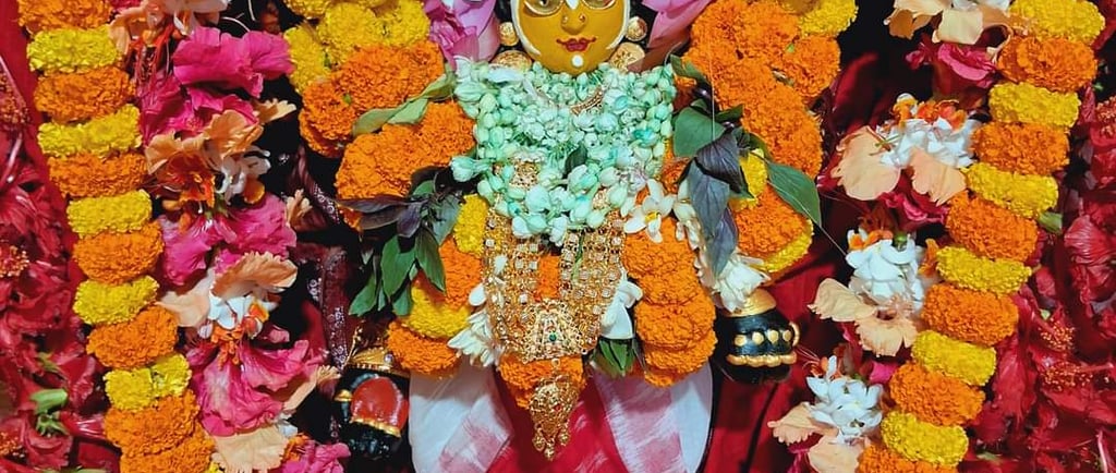 Birth after birth through the womb of a mother is doubtless a painful experience in the material world. The goal of life being God-realization, this is possible only when one is freed from the bondage of birth and death in the cosmic process of evolution. In Devi Tatwa, one can have the blessings of the Lord, only after the blessings of Devimata are achieved. Devimata is the replica of delusion. In the cosmic game of the Lord, Devimata is the first divine event of the creation. It is actually She Who incites the spirit of action in the Almighty Lord. God is omnipresent. So, in this sense, He is static by nature and devoid of action. He leaps into action within only when He comes in contact with the activating force of Devimata in the process of the cosmic game. Maya is actually the activating force of the Goddess. It is both in the affirmative and the negative forms. The affirmative form of Maya is known as 'Vidyamaya'. Its negative form is known as 'Avidyamaya'. One gets the result of one's action in the manner the same is directed. This is the whole concept of Devi Tatwa in relation to worship of Devimata in life. Devi is always one. She is Kali. She is Mahalakshmi. She is also Maha Saraswati. She however assumes a name according to the nature of Her service. She is worshipped in a multitude of divine expressions. Batamangala near Puri is one such divineexpression. She is a Vaishnabi Thakurani by nature. She is worshipped as the divine precursor of all-round happiness. The poet sings "Re, the fatigued mind, walk along the path ahead of you that leads to the Grand Temple of Lord Jagannath. On the way comes Batamangala first. Then comes Atharanala. Then Badadanda, the Grand Road. Take its dust on your forehead and serve the Sadhus. Reach Siddheswar next. Have the divine stroke on your forehead from the sacred cane at the Singhdwar of the temple. And next enter the Temple climbing the 22 steps. Kaibalya is available on either side. And finally have the 'Darshan' of the Lord Who is called "Kalasrimukha" standing behind the Garuda Pillar". These are the various parts of the pathway that lead one from Batamangala to the Grand Temple. The land of Lord Jagannath thus starts from Batamangala. The temple of the Goddess is situated by the side of the main road about 5 km before the temple of Lord Jagannath. The devotee bound for the Grand Temple from Bhubaneswar stands for a while in front of Batamangala and offers sacred light (Alati) seeking her blessings. There is a beautiful story in this regard. It is said that at the time of creation of the universe, Mother Batamangala had shown the path to Lord Brahma to have the Darshan of the Lord. It is the popular belief in this connection that Brahma had come into existence in the cosmic creation on a Tuesday in the month of Chaitra. At that point of time, he saw around him the vastness of an endless void and seeing that horrific syndrome, he became ruffled in mind. Maa Batamangala had appeared in front of Brahma at that particular point of time and shown him the path for further course of action. As a result of this, Lord Brahma had been able to see the bottom of the universe down below the navel of Lord Narayan and created the universe. Since Maa Batamangala had shown Brahma the way in the midst of his utter perplexities, she was known in the subsequent period of time as Batamangala in the land of Lord Jagannath. Batamangala however does not have any place in customary rituals of Lord Jagannath. It is known to one and all that in the early days, when there was no proper roadcommunication to Puri, the devotees who were coming to this sacred land on pilgrimage, had to pass through several hardships and tribulations. There was a belief then that once they set out on their pilgrimage, there was no chance of their returning back to their respective homes. So in that way, their journey to Puri was considered as their last journey in life. In the context of that situation, it was popularly believed that whosoever died at Puri during their sacred pilgrimage was destined to go to heaven and attain "Moksha". This belief even continues today. For which reason, the old people even today prefer to spend their last part of life at Puri in the hope of getting Moksha after their death. Purursottoma Kshetra is now well communicated in all respect. It is connected by both rails and roads on all sides. Till 1811, there was virtually no road-communication to Puri. Orissa came under British control in 1803. In 1826, the then British chief chalked out a plan for construction of a Pucca road from Calcutta to St George Fortress. This was a massive development project. This was considered necessary for effective control over the areas included under British control. During the process of the aforesaid construction, a branch-road was provided on the highway at a point near Bhubaneswar which was later known as Jagannath Sadak. This was done in the interests of the pilgrims visiting Puri. On the request of the British Chief, the Moharaja of Calcutta, Sukhamaya Ray had contributed Rs.1.50 Lakh for this purpose. However prior to this road project, king Machya-kesari of Machya Dynasty who had ruled our place during the period from 975 AD to 995AD had got a bridge constructed at Atharanala which in the subsequent period of time maintained the continuity of the aforesaid branch-road upto Singhadwara, Puri. It is further discernable from historical records that Bhanudev(1) of Ganga Dynasty who was the ruler of this place from 1264 to 1279 had developed the Banki Muhana area by filling up the intervening water courses and reduced the number of chariots from 6 to 3 during the sacred Car Festival. All these and other ancillary developments which had taken place from time to time had led to the overall development of the area around Batamangala and enhanced the importance of the place to a considerable extent. Worship of Batamangala, during Chaitra month is found mention in the Sakti cu