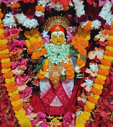 The title of this article is the translation of a famous line in Sanskrit from an important scripture, Bimala Purusottame which means that Bimala stays at Purusottama or Puri. This supposes that the proper name Bimala used to be a very familiar name of Goddess Durga during the time when the scripture was written. It also means that the name stood for the supreme importance of the deity. Another line in Sanskrit states thatBimala is a great goddess and Jagannath is an awesome appearance of Lord Shiva : Bimala tu Mahadevi Jagannathastu Bhairava. That Bimala is a great goddess being an appearance of Durga goes without saying. But to say that Jagannath or Vishnu is an appearance of the awesome aspect of Shiva and for that matter Bimala is his consort needs explanation. The question raised is how Vishnu can be Shiva. But the answer is not difficult to find. The three primordial principles of creation, preservation and destruction representing the Hindu deities of Brahma, Vishnu and Shiva are not mutually exclusive, but inclusive. They are not watertight compartments, but are continuous and all-embracing wholes. In other words, Vishnu is not different from Shiva. So Ramakrishna Pramahansa once declared that Jagannath is only Shiva and his idol is only a Shivalinga and should be worshipped as such. Similarly, one can say that Bimala is Laxmi, the consort of Vishnu, because both are parts of the same mother principle. It is because of this reason again that Puri is regarded as a meeting point and melting pot for the worships of both Vishnu and Shiva, of Durga, Laxmi and Saraswati, an idea which finds extensive elaboration in scriptures. The Brahma Puran in particular speaks of the sameness of Vishnu and Shiva in its account of sage Markandeya. So let us come back to our basic argument. Bimala is a great goddess whose worship at Puri is of supreme importance for the Hindus. Out of the fifty-two +places sacred to the worshippers of the mother principle, the very first one is Puri where the feet of Goddess Sati, an incarnation of Durga fell on earth when Vishnu chopped her body off with His wheel in order to pacify Shiva, who was angry due to his first consort Sati's untimely death. In this story we see a philosophy, a synthesis between principles and a comprehensiveness and the allembracing nature of Hinduism. It also speaks of the oneness of godhead in a diversity. So Bimala's presence at Puri not only makes this sacred place the first of the holy spots for the worshippers of the mother principle, it also preaches comprehensiveness, the basic tenet of a great religion. The last but not the least question is why Sati's feet should fall at Puri and not at any other place on earth. In answer one may say that this is the postulate of a scripture which cannot and should not be questioned. You may either accept or not accept it. Bimala's temple is situated at the right hand western corner of the tower of Jagannath, just by the side of the Rohini Kunda. The temple's closeness to the Rohini Kunda is a testimony to its ancientness, because Rohini Kunda is one of the two most ancient relics existing in the precinct, the other being the holy banian tree named Kalpavata. The Bimala temple is similar in structure and height to the Nrusimha temple near Muktimandap which, according to historians, was built in the ninth century. As one enters the Bimala temple one sees the idol of a majestic lion, Durga's animal vehicle riding an elephant which signifies the victory of good over the mighty evil. The great Salabeg, a Muslim poet of the seventeenth century, sings the glory of the spot in one of his beautiful songs on Jagannath written in Oriya language. The entrance to the sanctum sanctorum is decorated with figures of Shaivite and Shakta deities. The various appearances of Goddess Durga as well as paintings depicting the goddess's role in subduing the demons attract the devotee's attention most. The inner temple houses the principal idol of the goddess which is said to be a sixth century structure because it is bereft of elaborate decorations. The goddess possesses not too comely and not too angry a face and wields two arms holding a pitcher said to contain nectar in one hand and a rosary in the other. That she does not wield weapons is an evidence of the benevolent nature of the goddess. She is, therefore, a goddess of goodness, of godly traits of long life and devotion. So she is in the most peaceful appearance of Goddess Durga. No separate food items are usually cooked for the goddess for ritual offering. But the cooked food offered to Jagannath in various rituals becomes mahaprasad or the famed Jagannath rice only after being specially offered to Bimala. So after the puja of Jagannath a little of his offering is given to Bimala in a ritual. Bimala is described, therefore, in scriptures as a goddess who lives on the remnants of Jagannath's food. There is a legend in the background of this practice. Once Shiva, a god of the Hindu trinity, went to Vaikuntha in order to meet Vishnu. But the latter had just taken his food, a few grains of which had fallen on the ground. Shiva picked up a sacred grain and swallowed it quickly, hoping supreme good. But a half of the grain had fallen on his beard of which he was completely oblivious. Next, Shiva went to his abode after which Narada, the sage of devotion, came to him. When the latter saw the sacred grain on Shiva's beard he quickly grabbed it and swallowed within no time. After this came Shiva's consort Parvati who knew through her mind's eye that Shiva had first swallowed the precious thing without giving her a share to which as Shiva's consort she was entitled. She was crestfallen and suffered a great remorse. Next she went to Vishnu and complained. Vishnu told her that in the Kali Age she would sit as Bimala at Puri and eat everyday the remnants of his food. From the very first day of the Kali Age this practice is continuing Mahaprasad or Jagannath rice which is of